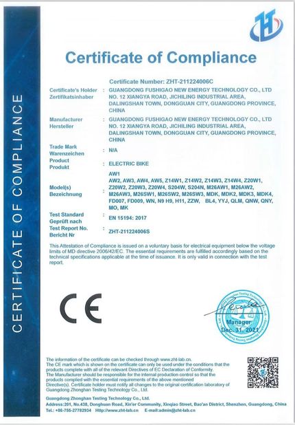 GUANGDONG EV NEW ENERGY CO.,LTD sertifikasi